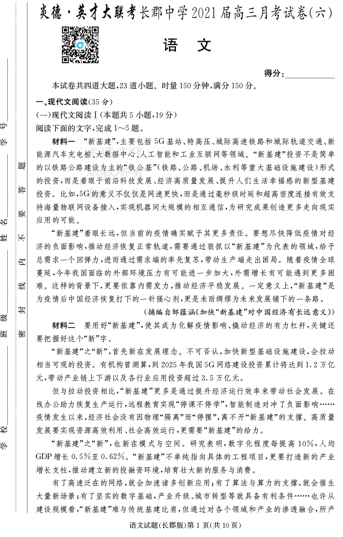 2026長郡中學新高考考前小題沖刺訓練·語文