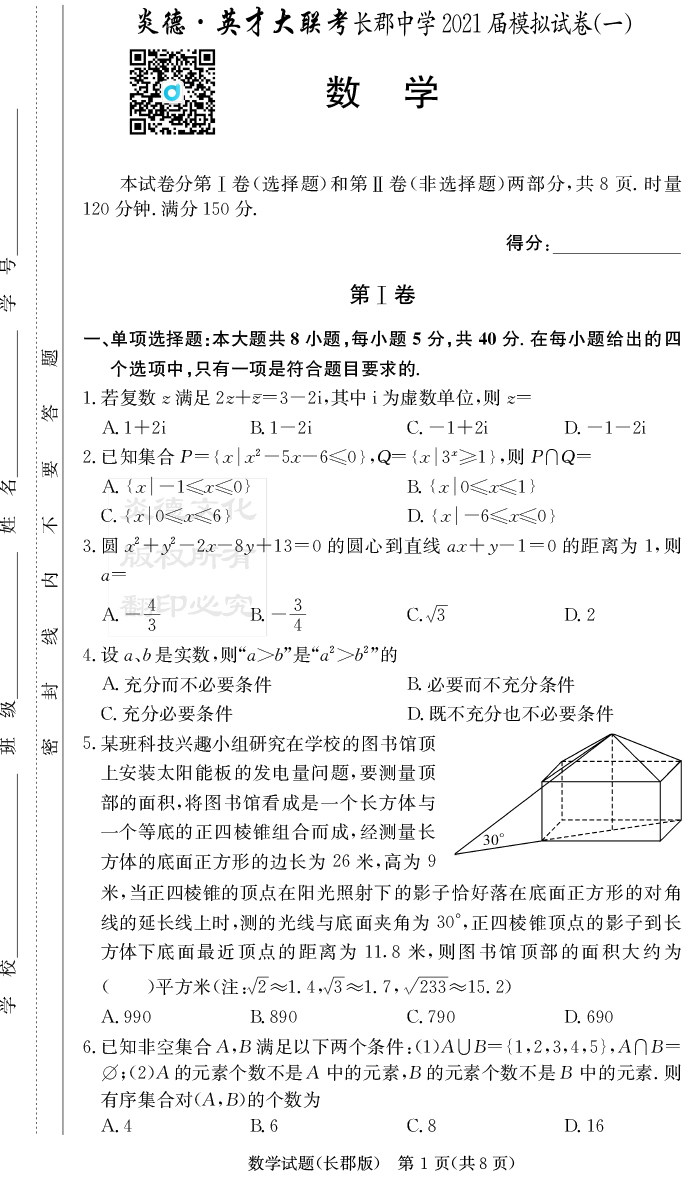 2026長郡中學新高考考前小題沖刺訓練·數學