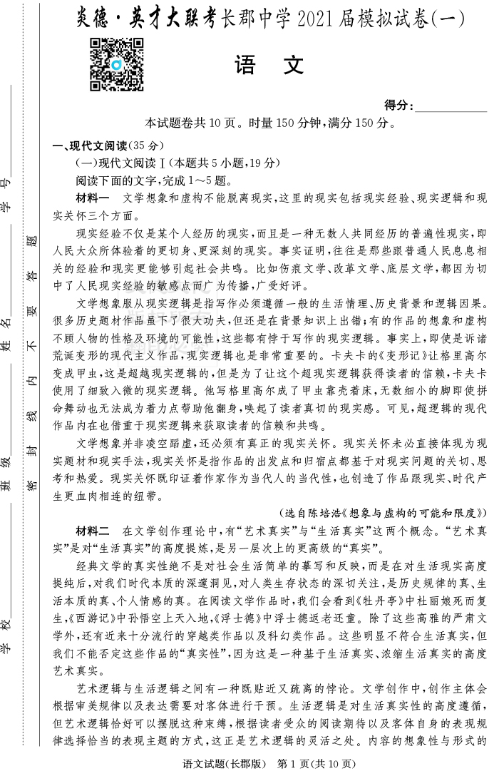 2026湖南師大附中新高考考前小題訓練·語文