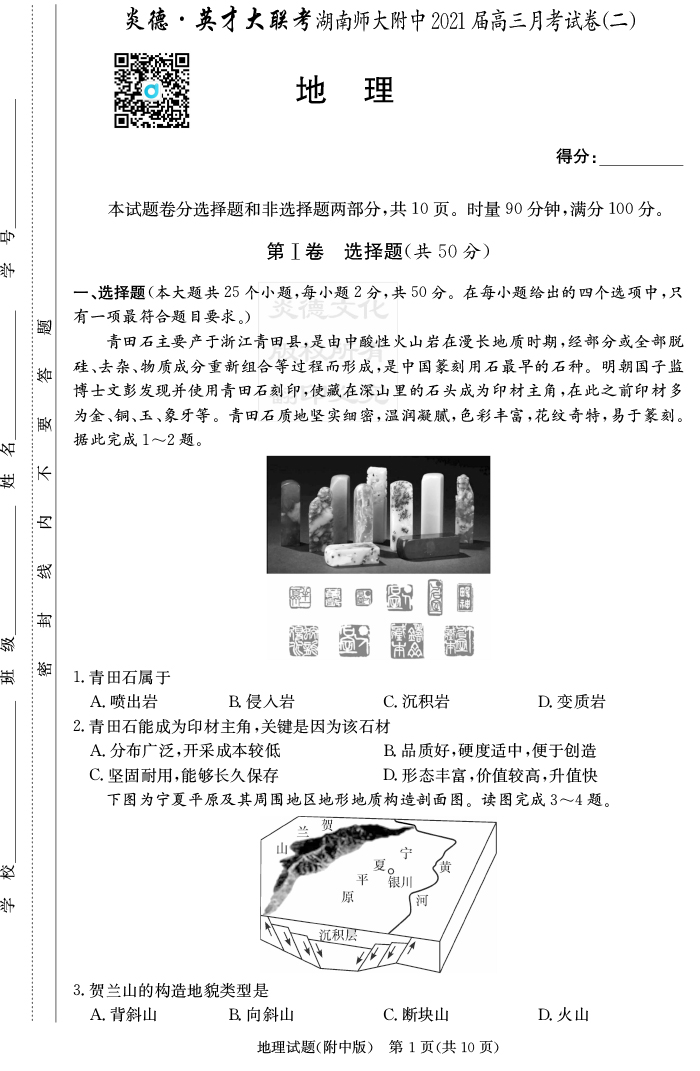 2026長郡中學新高考考前小題沖刺訓練·地理