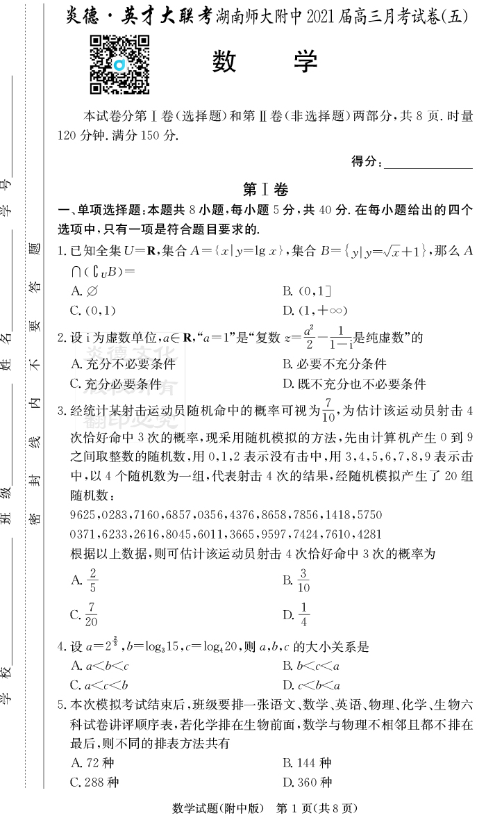 2026湖南師大附中新高考考前小題訓練·數學