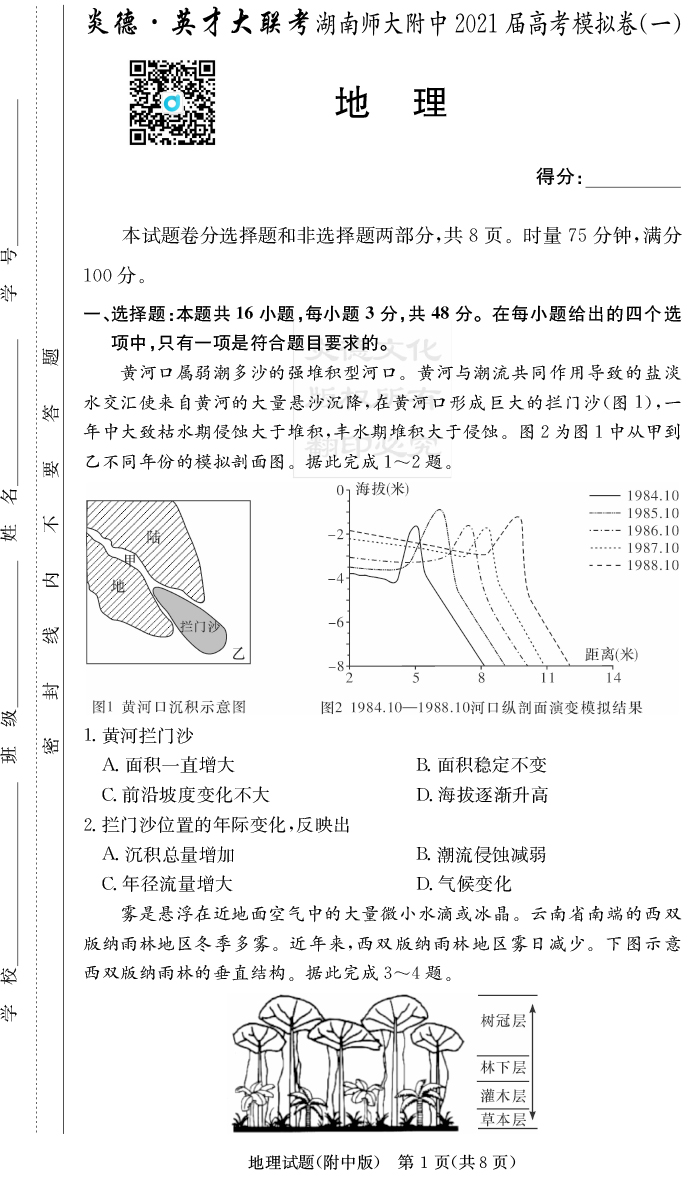 2026湖南師大附中新高考考前小題訓練·地理