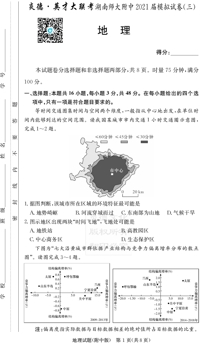 【地理】炎德英才大聯考2021屆湖南師大附中高三10次月考(模擬三)