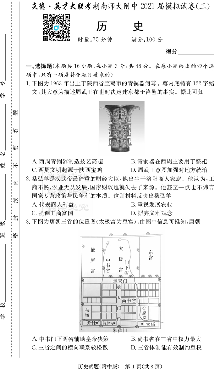 2026湖南師大附中新高考考前小題訓練·歷史
