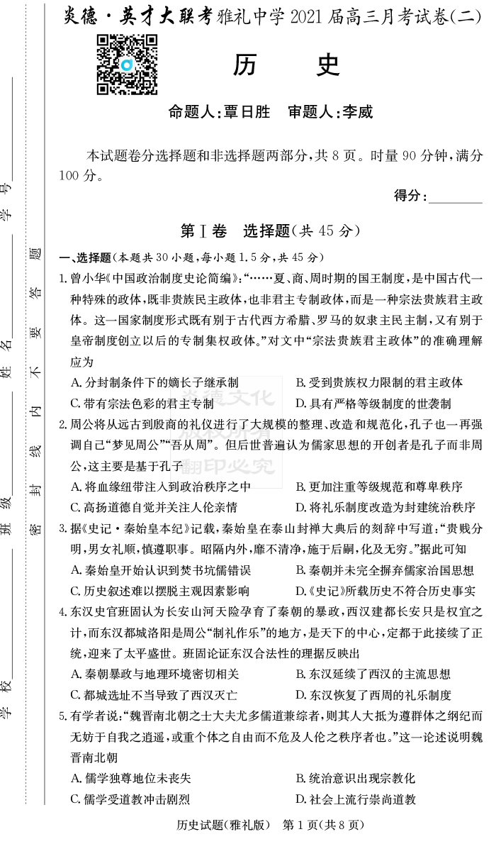 | 資源類別: | 名校月考 | |