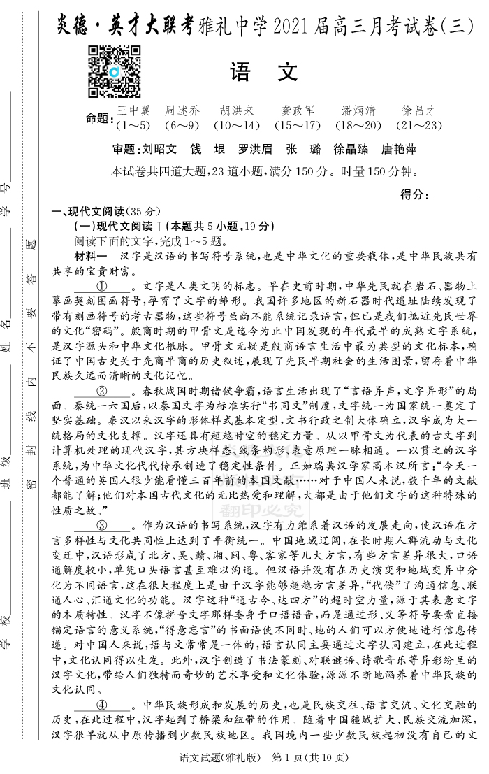 2026湖南師大附中新高考考前小題訓練·語文