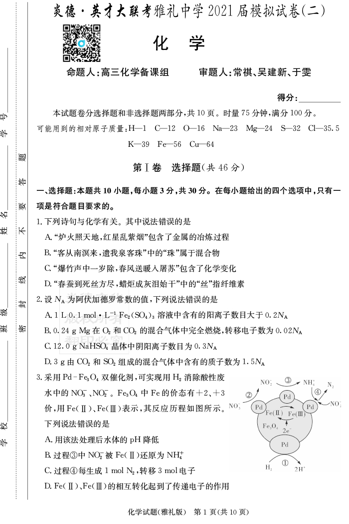 上一篇:【地理】炎德英才大聯考2021屆雅禮中學高三10次月考(模擬二)