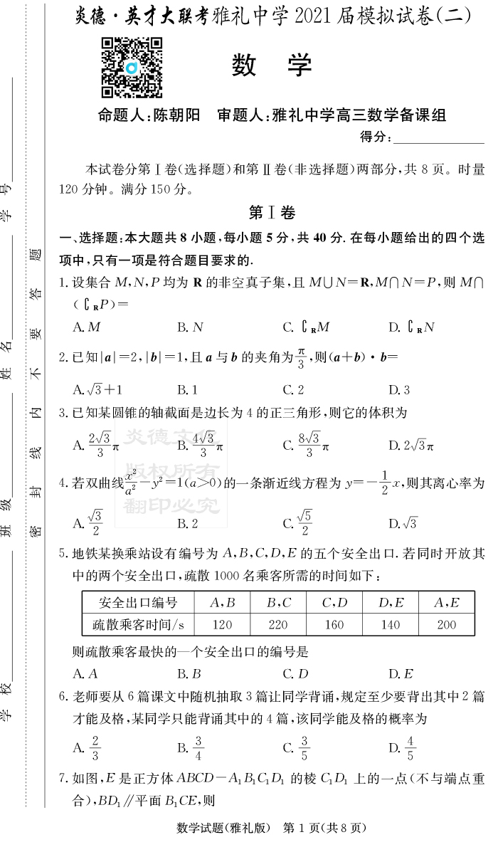 上一篇:【生物】炎德英才大聯考2021屆雅禮中學高三10次月考(模擬二)