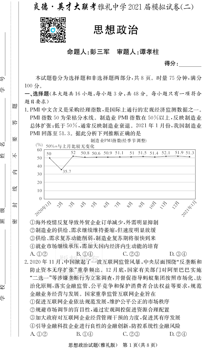 上一篇:【語文】炎德英才大聯(lián)考2021屆雅禮中學高三10次月考(模擬二)