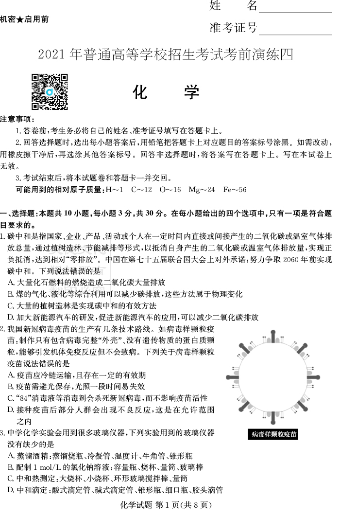 下一篇:【歷史】2021年普通高等學校招生全國統一考試考前演練(四)
