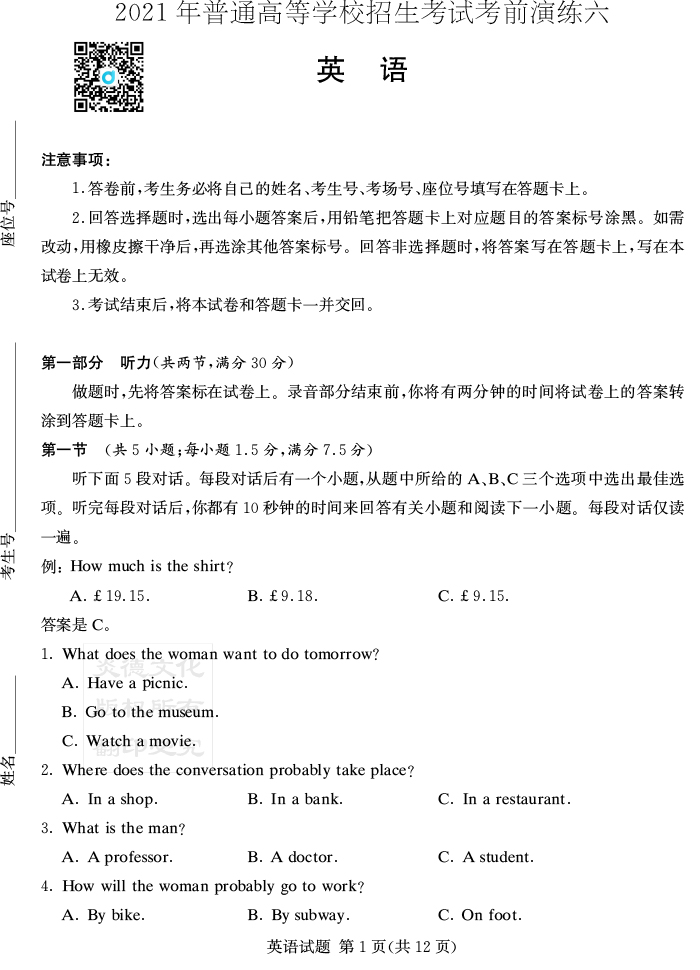 下一篇:【語文】2021年普通高等學校招生全國統一考試考前演練(六)
