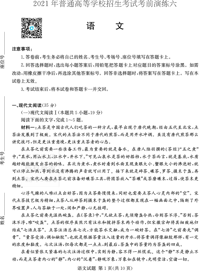 下一篇:【政治】2021年普通高等學校招生全國統一考試考前演練(六)