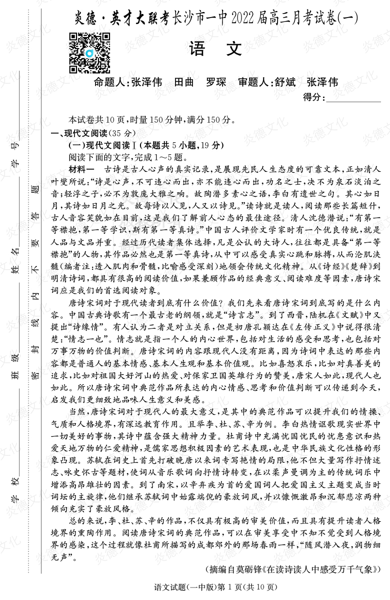 | 資源類別: | 名校月考 | |