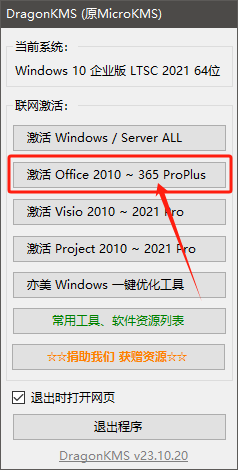 記得關閉殺毒軟件,啟動激活軟件。點擊激活 Microsoft Office 運行激活程序