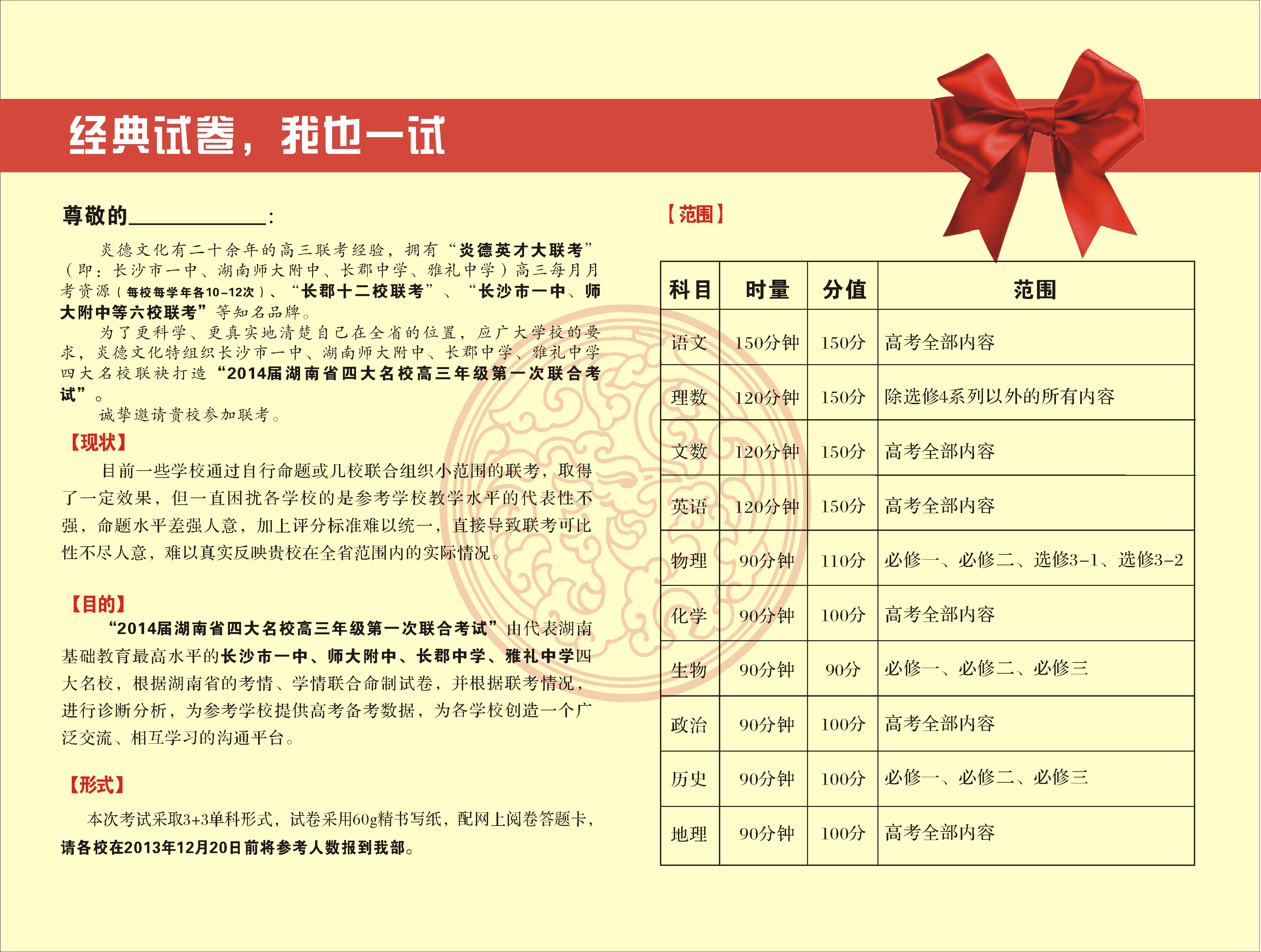 2014屆四大名校聯(lián)考邀請函
