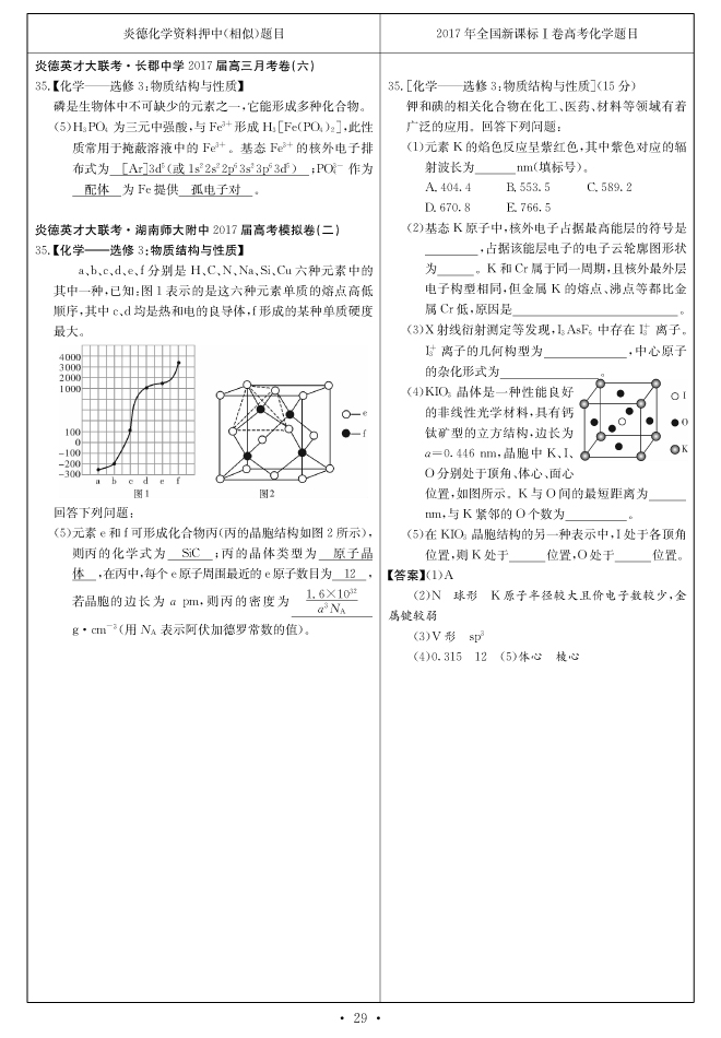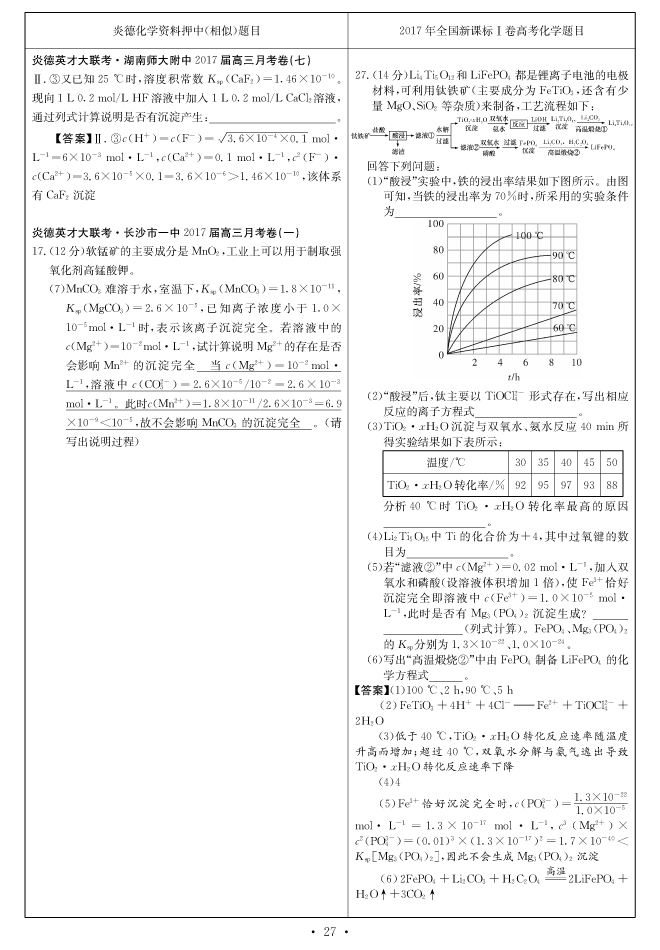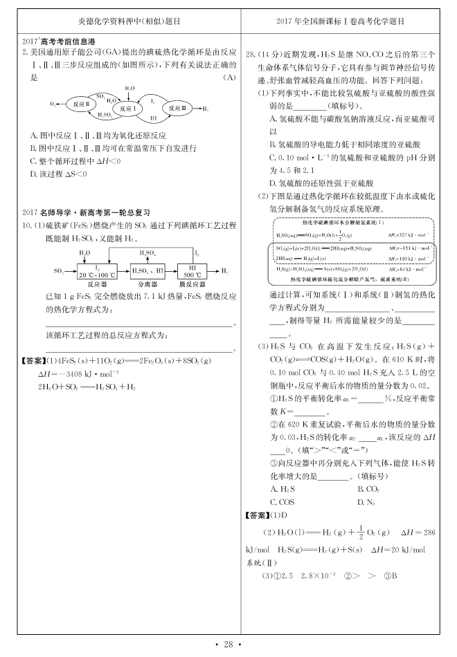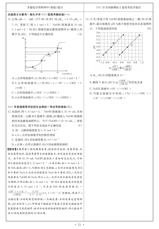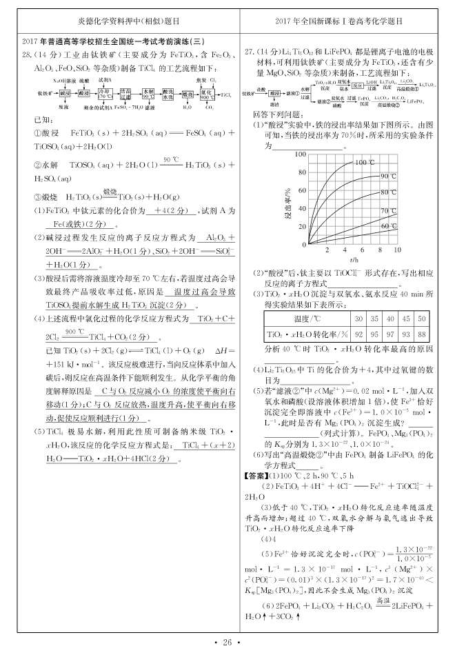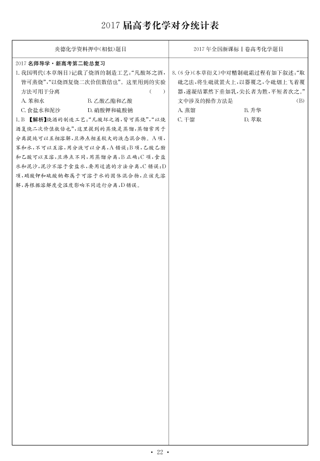 2017高考全國卷Ⅰ對(duì)分表-化學(xué)