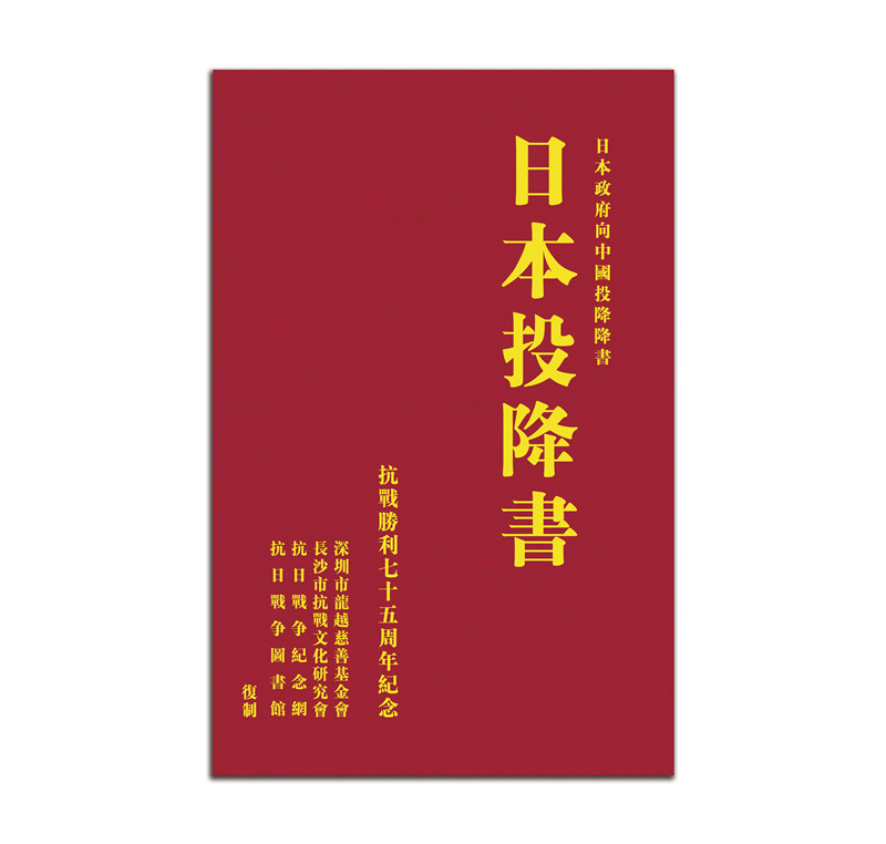 為慶祝日本投降75周年,深圳市龍越慈善基金會、抗日戰(zhàn)爭紀念網(wǎng)、長沙市抗戰(zhàn)文化研究會、抗日戰(zhàn)爭圖書館特別復制27375本(紀念抗戰(zhàn)勝利27375天)《日本投降書》,向關(guān)注抗戰(zhàn)歷史的國人免費贈送(需支付快遞費)。