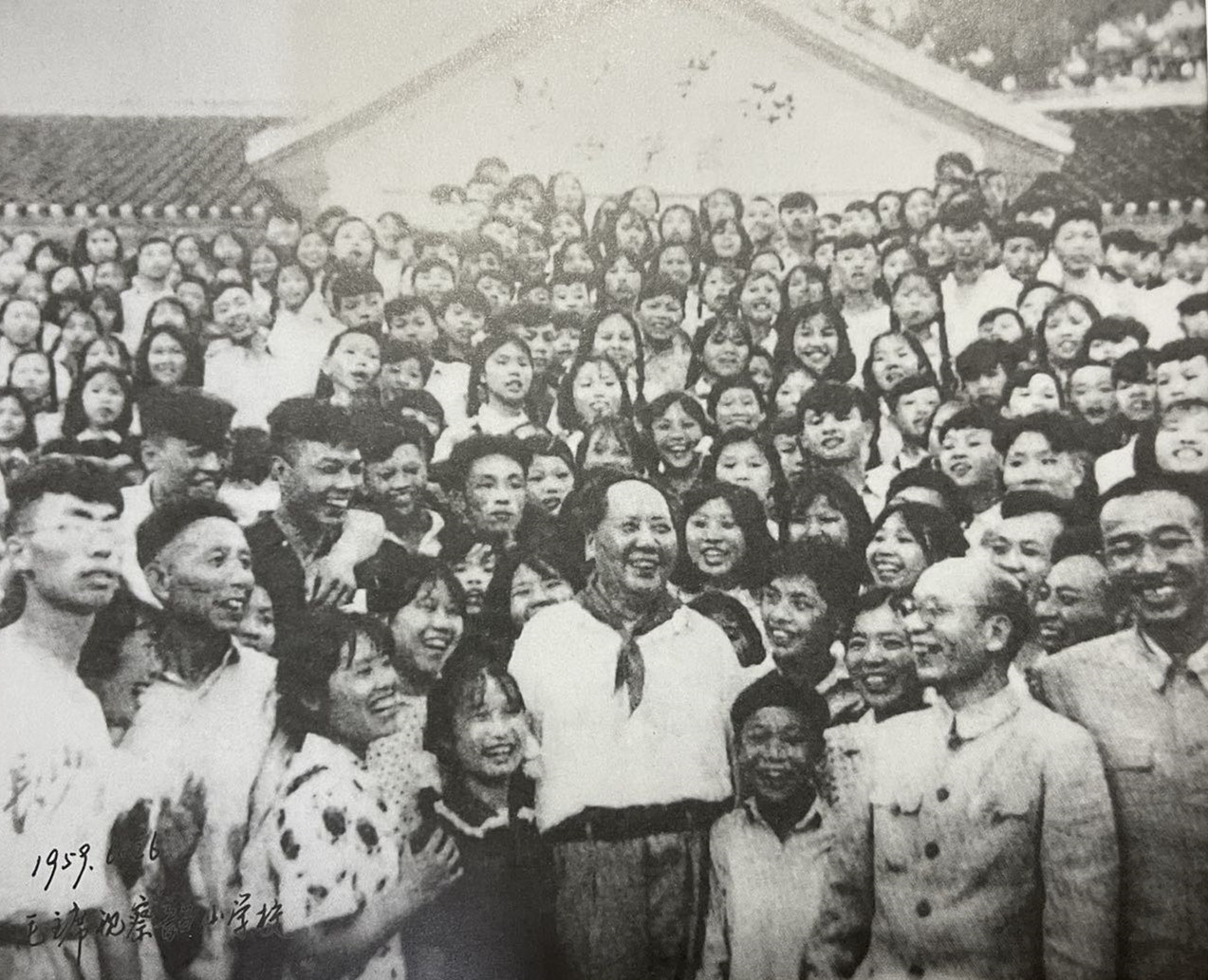 1959年。毛澤東與韶山學(xué)校師生合影。
