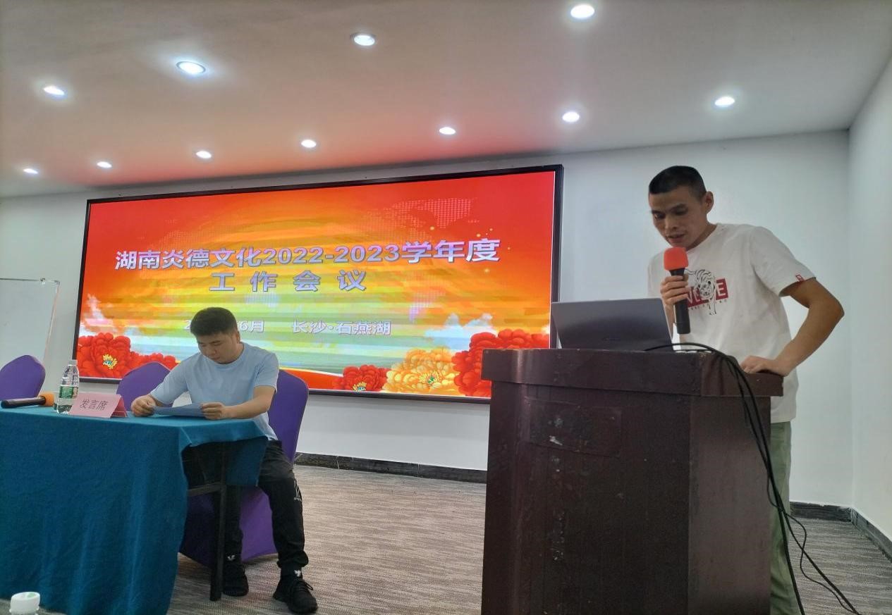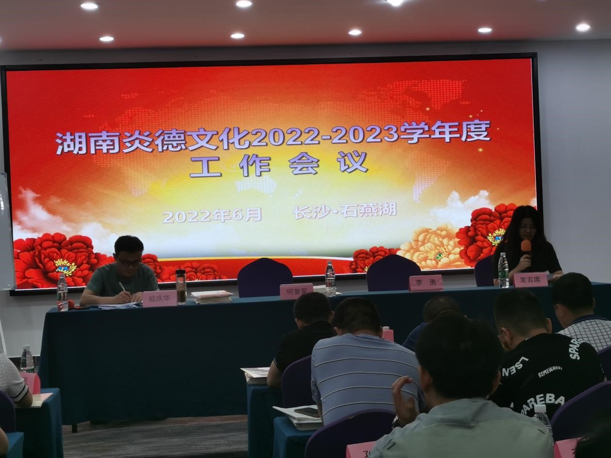 2022年6月9-11日,湖南炎德文化實業(yè)有限公司在長沙石燕湖召開2022-2023學(xué)年度湖南區(qū)域業(yè)務(wù)工作總結(jié)會議。會議由歐慶華先生主持,公司各部門、導(dǎo)學(xué)教育及特邀嘉賓、湖南區(qū)域全體業(yè)務(wù)經(jīng)理參加會議。會上,各部門負(fù)責(zé)人就公司各項工作進(jìn)行了總結(jié),對2022-2023學(xué)年度工作進(jìn)行了部署,業(yè)務(wù)經(jīng)理代表進(jìn)行了經(jīng)驗分享和交流,最后由公司董事長何譽軍先生總結(jié)講話。