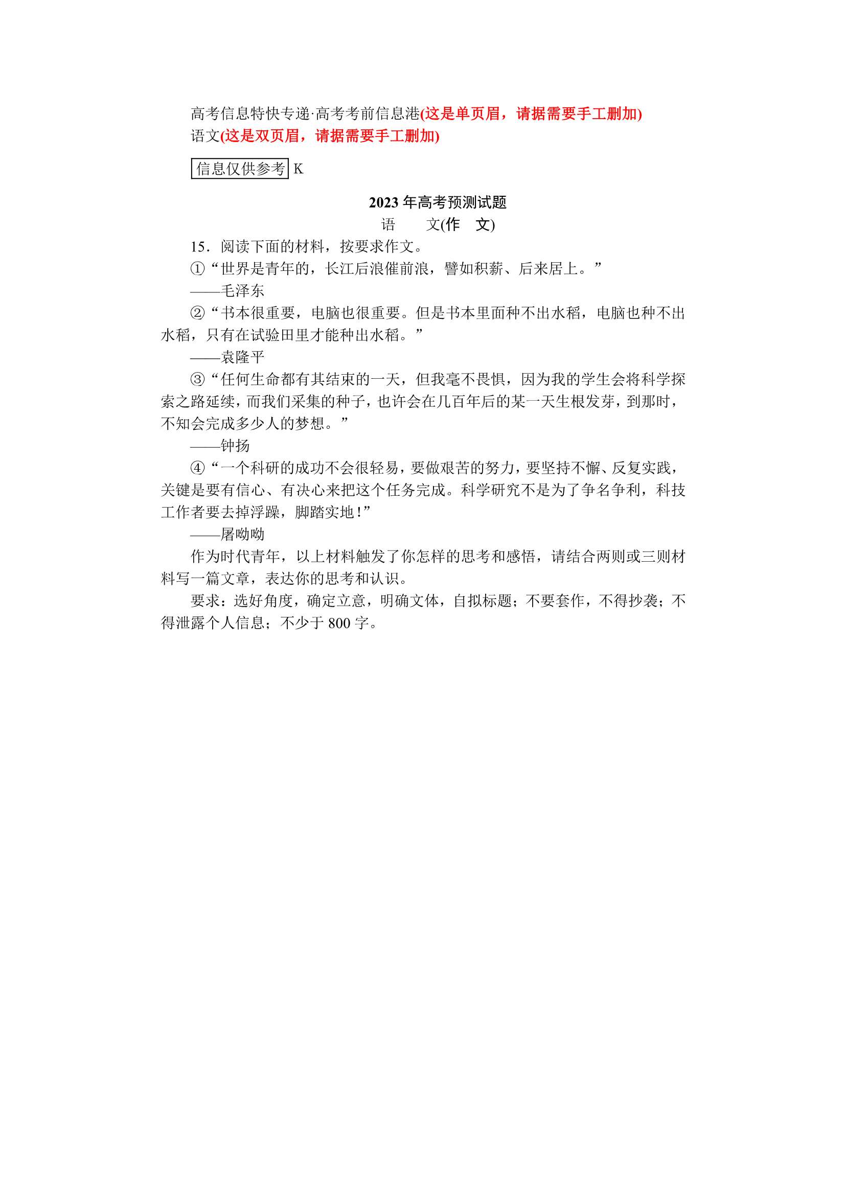 2023年高考考前預(yù)測(cè)信息補(bǔ)充內(nèi)容(三)6月2日
