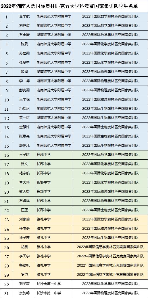 長(zhǎng)沙晚報(bào)掌上長(zhǎng)沙3月18日訊(全媒體記者 舒文)今日,中國(guó)科協(xié)青少年科技中心發(fā)布2022年國(guó)際奧林匹克五大學(xué)科(數(shù)學(xué)、物理、化學(xué)、生物以及信息學(xué))競(jìng)賽國(guó)家集訓(xùn)隊(duì)名單,全國(guó)共有260名學(xué)生入選。湖南作為競(jìng)賽強(qiáng)省今年取得了不俗的成績(jī),共有31名學(xué)生入選,總?cè)藬?shù)居全國(guó)第二。